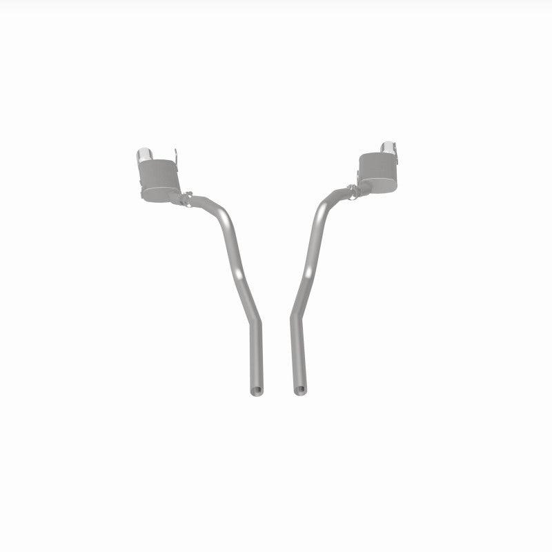 The MagnaFlow 2005-2009 Ford Mustang Street Series Cat-Back Performance Exhaust System 15881 brings out the personality of your 4.6L, 5.4L 2005-2009 Ford Mustang with our signature resonant, powerful engine tone and dyno-proven performance. Thanks to its fast-flowing, mandrel bent 2.5in. main piping and 2 Straight-Through mufflers ending in a Dual Split Rear exit with 4in. Polished Welded-On Double Wall Angle Cut Rolled Edge tips, this Ford Mustang exhaust kit has the performance chops to match its sporty sound and appearance. Upgrade your ride to the next level with an exhaust that has the pipes to put other Ford Mustang's to shame. With this system your vehicle will be producing Moderate exterior and Mild interior sound levels while leaving other cars and trucks feeling envious at every stoplight. Exhaust kit 15881 features a cat-back layout that replaces your ride's stock exhaust components from near the catalytic converter on back. Extensive 3D scanning during development has resulted in a direct-fit design that you can easily install yourself. 15881 is produced using CNC precision robotic manufacturing techniques and is backed by MagnaFlow's 1-year limited finish warranty and limited lifetime construction warranty.