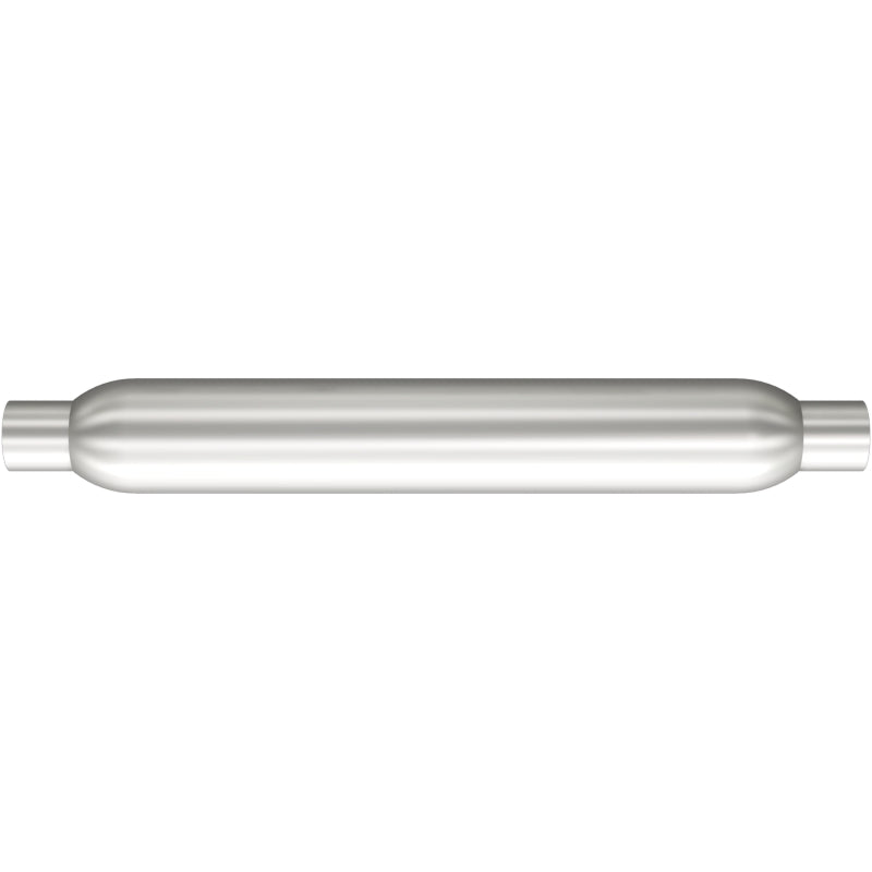 The MagnaFlow 3.5in. Round Glasspack Performance Exhaust Muffler 18125 enhances your ride with the deep, classic sound that glasspack mufflers are known for. The round muffler body features a free-flowing reversible straight-through 2.25/2.25in. diameter configuration and single stage packing with a satin finish. This weight-optimized glasspack muffler is engineered to bring out the inner hot rod in your ride with plenty of volume and dyno-proven performance, so please check to ensure compliance with local noise regulations. 18125 offers flexibility when it comes to installation thanks to its universal design, however, professional installation is recommended. Muffler 18125 is made of corrosion resistant aluminized steel and produced using CNC precision robotic manufacturing techniques, all backed by MagnaFlow's 90-day limited construction warranty.